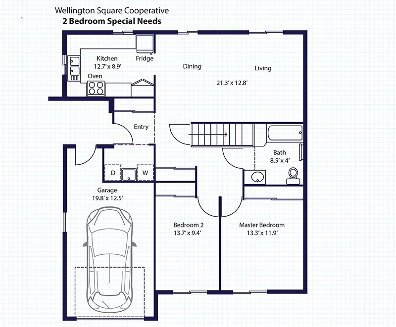 For Wellington Square Co-opWellington Square Housing Cooperative has a total of 91 units, consisting of 21 two-bedroom, 56 three-bedroom, 8 four-bedroom, and 6 accessible-needs units.